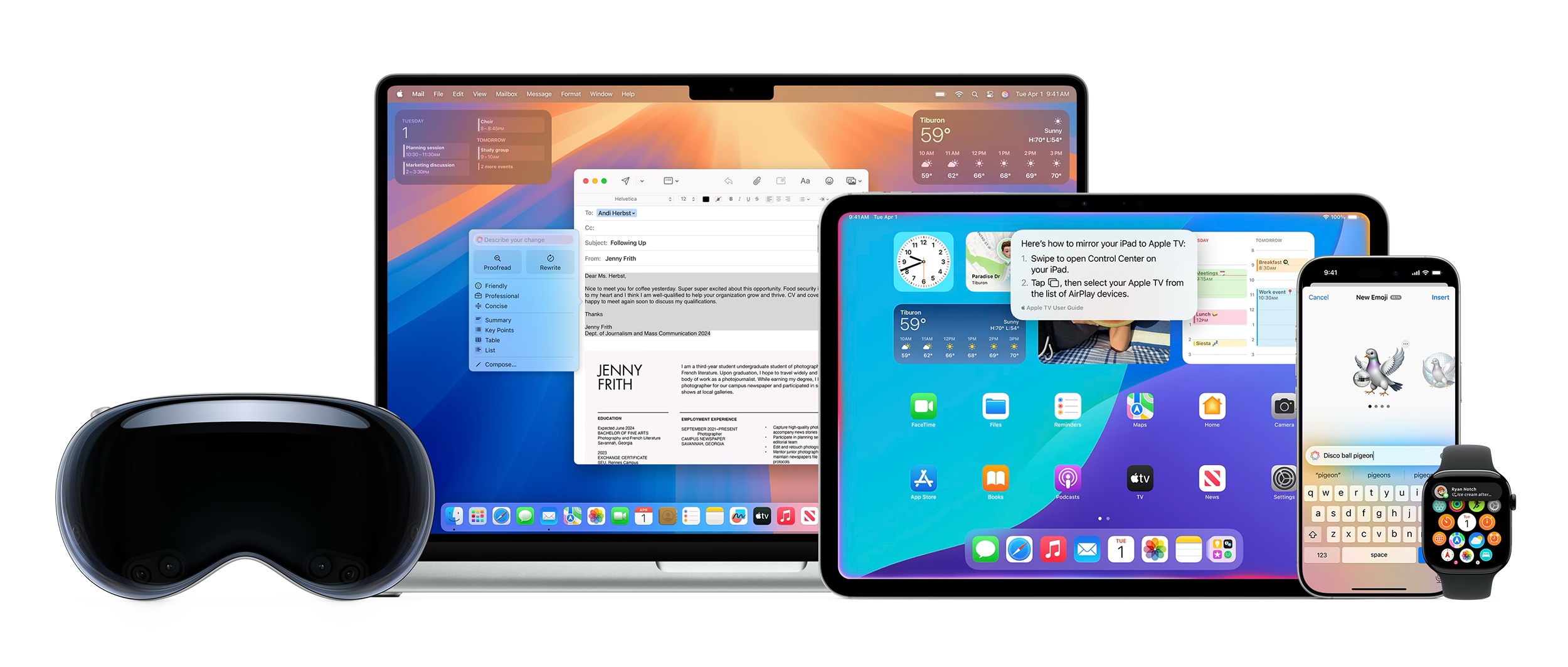 Apple Intelligence is the personal intelligence system that puts powerful generative models right at the core of your iPhone, iPad, Mac, Apple Vision Pro, and Apple Watch with incredible new features to help people communicate and work better. You can bring Apple Intelligence features right into your apps, integrate into places across the system via App Intents, and tap into models directly to build your own intelligent experiences.