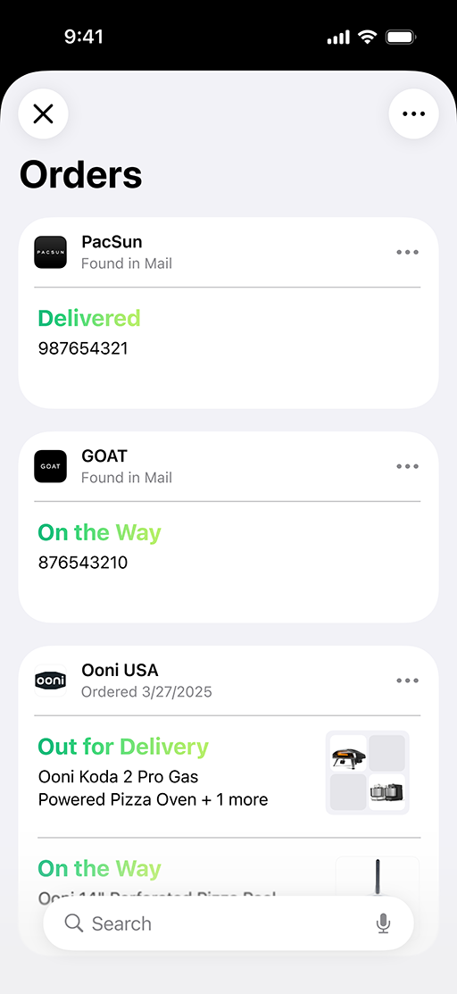 Wallet now uses Apple Intelligence to automatically find order details in Mail and track them for you, saving you time and hassle. Access key details like merchant name, tracking numbers, and shipping information, plus all related emails for an order, conveniently organized within Wallet. Powered by on-device Apple Intelligence, order information is processed securely, respecting people’s privacy.2