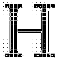 The New York H is used to illustrate the instruction of an upper case serifed straight glyph in a Roman font. Some upper case straights are shown in Figure 8.Figure 8 Upper case straights