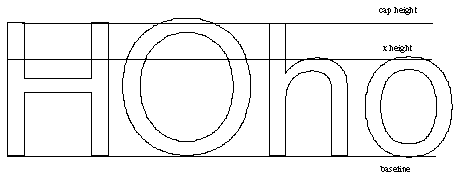 In instructing glyphs, it is important to preserve the overall look of the font and the relationships between glyphs. To accomplish this it is important to identify key dimensions, such as the cap height, x-height and baseline that apply to the font as a whole. At small pixel per em sizes, subtle variations in these dimensions are not possible and drastic differences will be disasterous.In a Roman font, the upper case 'H' and 'O' and the lower case 'n' and 'o' are typically used as control characters for the purposes of determining the cap height and the x-height for straight and round characters. These characters can be useful in building the control value table.