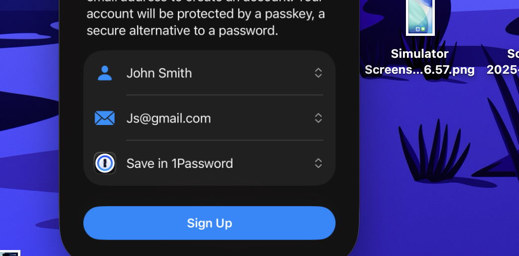 The sign up sheet gives me the option to save in 3rd party apps, but when I select a 3rd party app, I just get the ASAuthorizationError cancelled error? So I dont even know what the problem is?