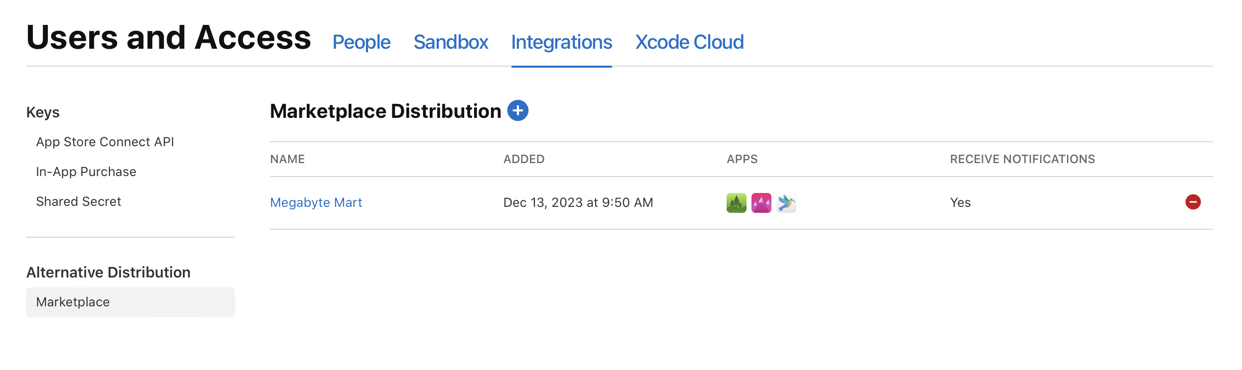 You can then manage which apps you want to make eligible for distribution on that marketplace, enable notifications for the marketplace, and provide the marketplace developer with the app’s alternative distribution package so they can distribute your app. You can choose to give them the alternative distribution package ID, send them the package, or set up notifications so Apple notifies them when the ID is available (if the marketplace supports notifications).