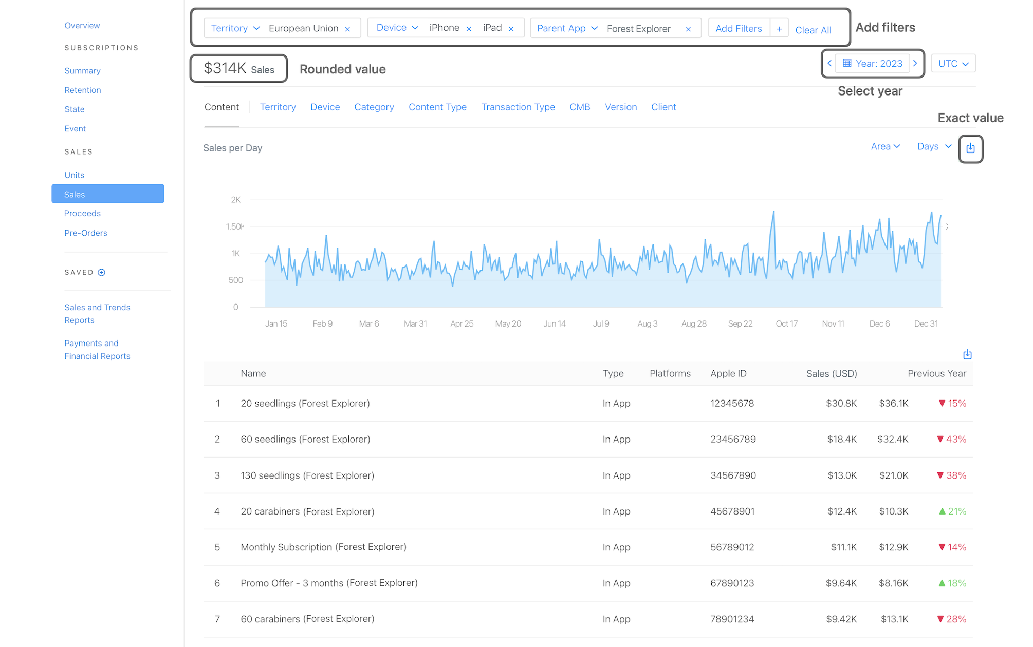 • If you offer In-App Purchases: Your app’s previous sales from iPhone and iPad devices in the EU, available in the Sales and Trends dashboard.