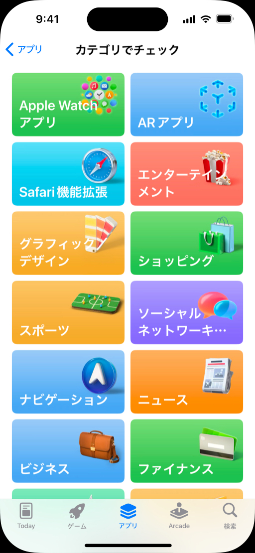App Storeのカテゴリは、ユーザーが自分のニーズに合ったアプリを見つける上で役立ちます。デベロッパは、プライマリカテゴリとセカンダリカテゴリをアプリに設定できます。アプリを見つけてもらいやすくするには、プライマリカテゴリが特に重要です。ユーザーが閲覧したり検索結果を絞り込みに影響し、App Storeのどのタブにアプリが表示されるのかがプライマリカテゴリにより決まるからです。そのため、最も関連性の高いプライマリカテゴリを選択してください。アプリに関連のないカテゴリを選択すると、審査への提出時にアプリが却下される原因になる可能性があります。