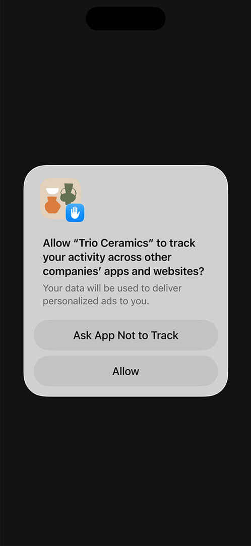 - 맥락을 제공하세요. 가능하다면 사용자의 ATT 상태를 별도의 제어 기능에서 일부분으로 표시하여 사용자가 이미 선택한 내용을 이해할 수 있도록 하세요.