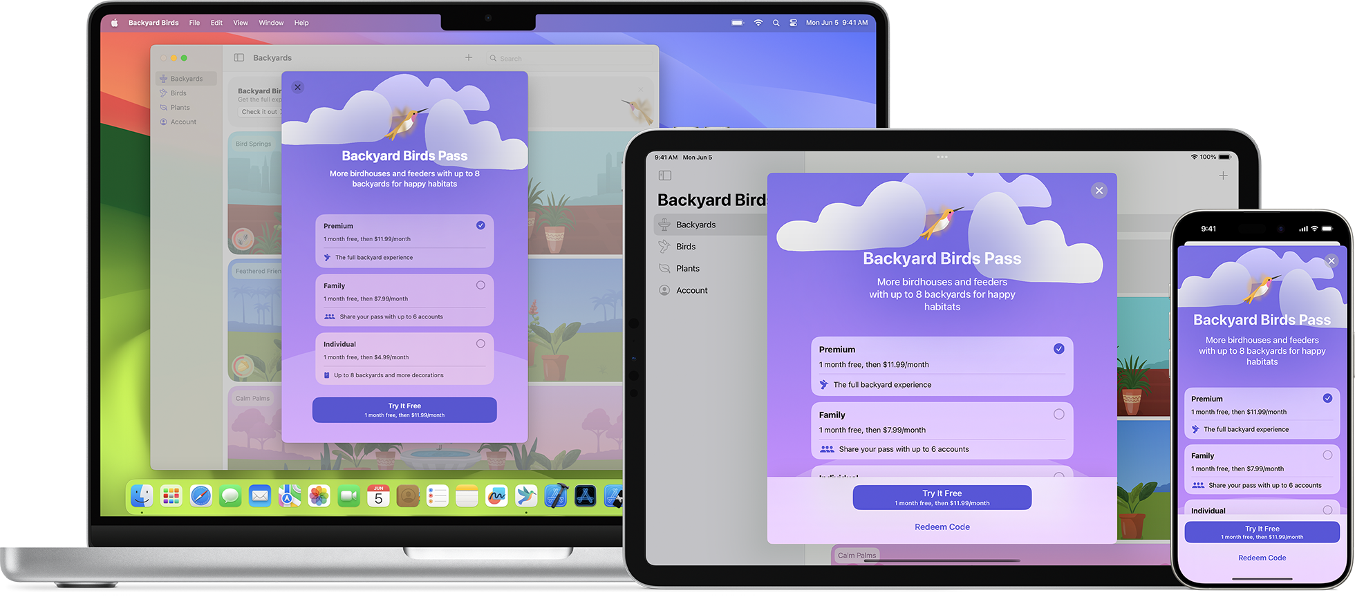 자동 갱신 구독 또는 비소모성 앱 내 구입을 제공하는 앱은 가족 공유를 제공하여 사용자가 최대 5명의 가족 구성원과 접근 권한을 공유하도록 할 수 있습니다. 간소화되고 편리한 가족 공유는 구독자 확보, 유료 구독 독려, 참여 증진, 유지율 개선에 도움이 될 수 있습니다.