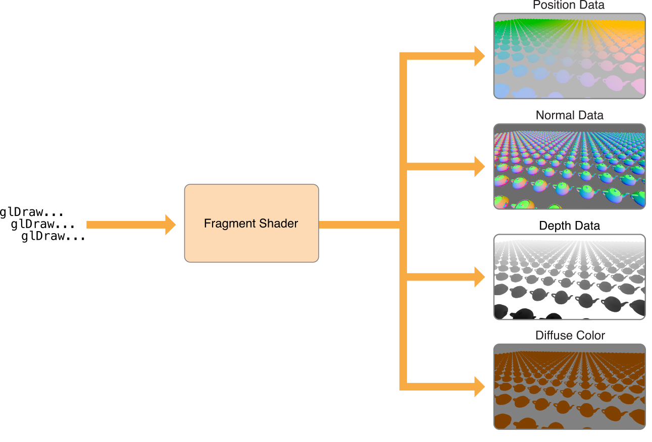 Figure 6-3  Example of fragment shader output to multiple render targets