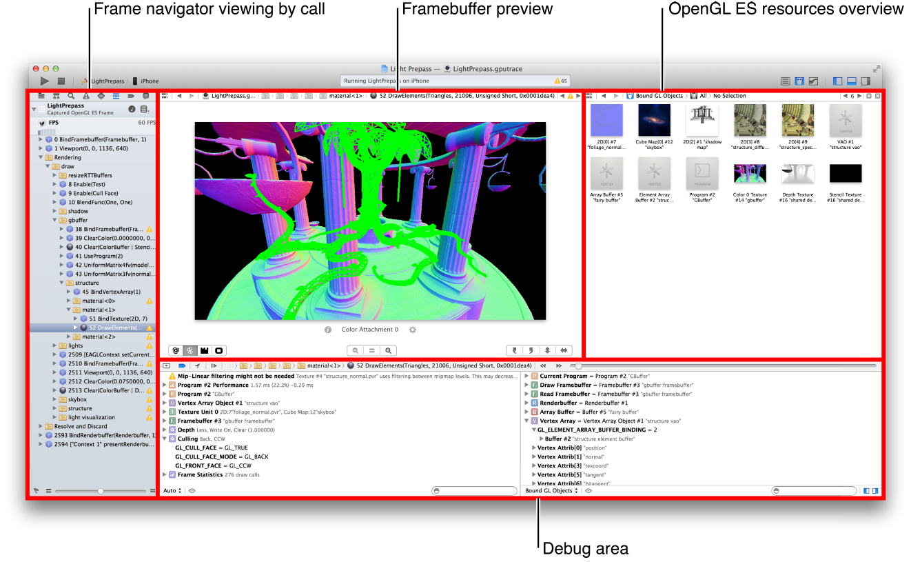 Effectively using the Xcode OpenGL ES features requires some familiarity with Xcode’s debugging interface. For background information, read Xcode Overview.