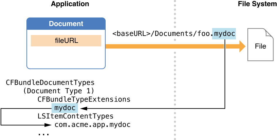A document-type UTI can be defined by the system; see System-Declared Uniform Type Identifiers in Uniform Type Identifiers Reference for a list of these common identifiers. A document-based application can also define its own proprietary UTI for its documents (and often does). If it does declare a custom UTI, it must also export that UTI to make the operating system aware of it.