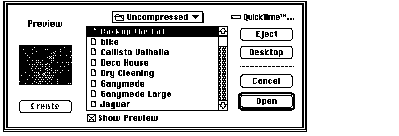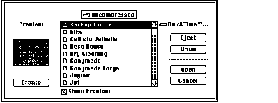 QuickTime provides standard file functions that your application can use to display a file’s preview during the Open dialog box. These functions allow your application to support previews automatically.
