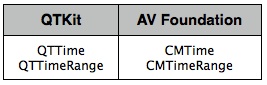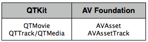 Here's a summary of the classes for representing audiovisual media with QTKit and AV Foundation: