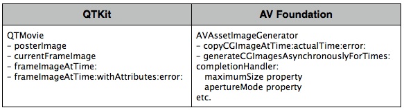 Figure 10  Getting Still Images from a Video using QTKit and AV Foundation.