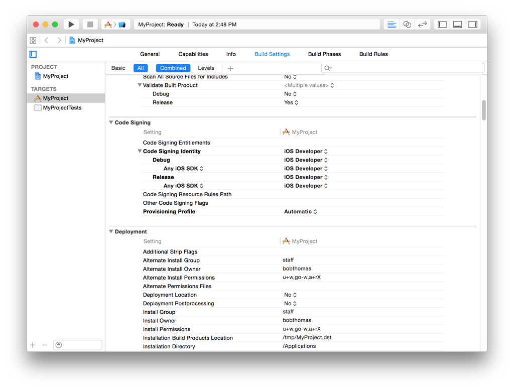 After profiles are installed in Xcode, they can be used to code sign an app. Before that, you must configure the target's build settings to allow Xcode to automatically sign the app with the right provisioning profile for you.