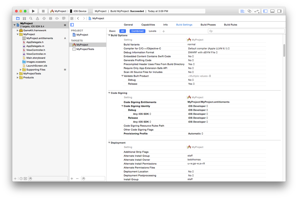 The following are relevant notes regarding Xcode's use of code signing entitlements files: